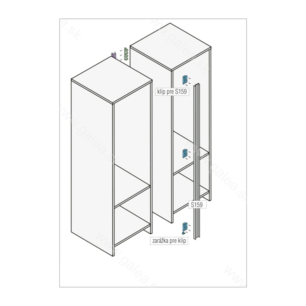 S159, S160/z - zarážka ku montážnym klipom S159/k a S160/k. Materiál plast, cena je za 1 ks. Zarážka sa osadzuje na spodný montážny klip a zamedzuje posunu profilu v klipoch smerom nadol. Pred priskrutkovaním spodného klipu zacvaknete zo spodnej časti zarážku.