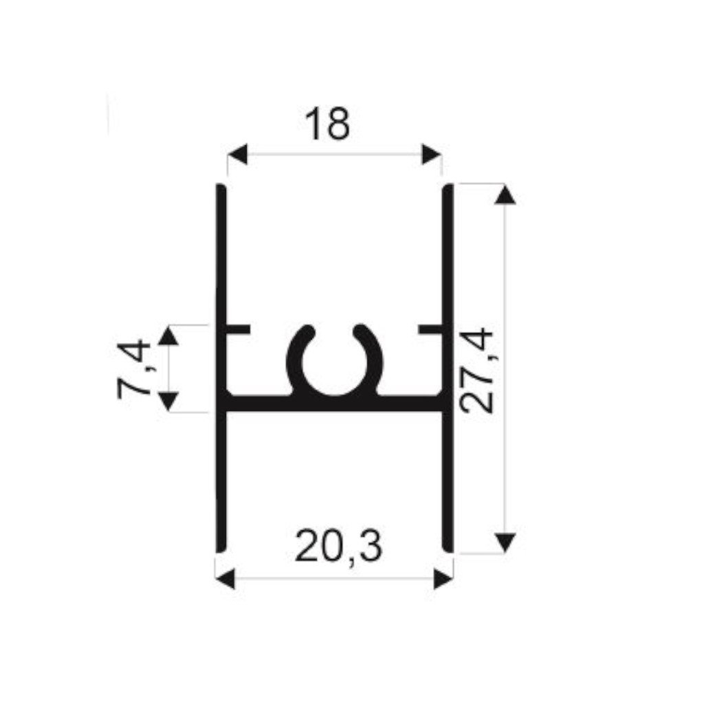 Spojovací H profil SEVROLL H28 s dĺžkou 3 m je určený pre systém Simple/Blue s hrúbkou 18 mm. Tento profil slúži na spevnenie rámu a umožňuje spoľahlivé spojenie medzi jednotlivými časťami posuvných dverí. Pre spojenie s úchytovými lištami je nutné použiť príslušné skrutkovacie prvky.
