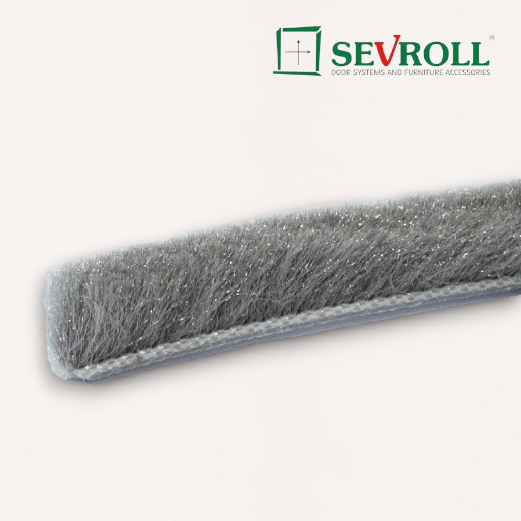 Štetina s lepidlom SEVROLL s rozmermi 6,7 x 9 mm je určená pre tlmenie dorazu dverného krídla a poskytuje ochranu proti prachu. Aplikuje sa nalepením uprostred bočnej drážky úchytkovej lišty. Šedá farba štetiny zaisťuje diskrétny vzhľad a funkčnosť. Pred aplikáciou je potrebné profil dôkladne očistiť a odmastiť, aby bolo zaistené pevné prilepenie.