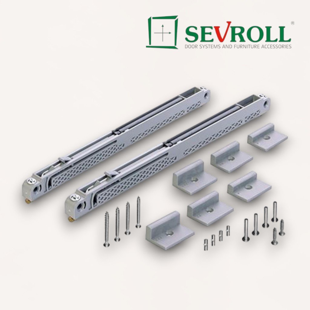 Univerzálny tlmič dorazu SEVROLL Mini SV40 je určený pre všetky systémy kovania SEVROLL, vrátane Simple a Blue. Tento tlmič umožňuje plynulý a tichý doraz dverí a je ideálny pre krídla dverí s hmotnosťou 25-40 kg. Pri použití tlmiča sa výška krídla mení oproti štandardu a závisí od použitého systému, preto sa odporúča použiť objednávkový formulár na presný výpočet výplne.