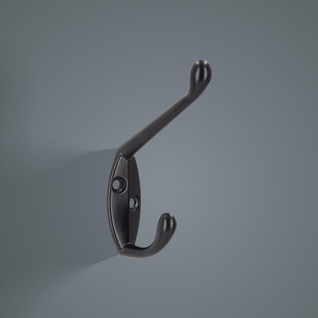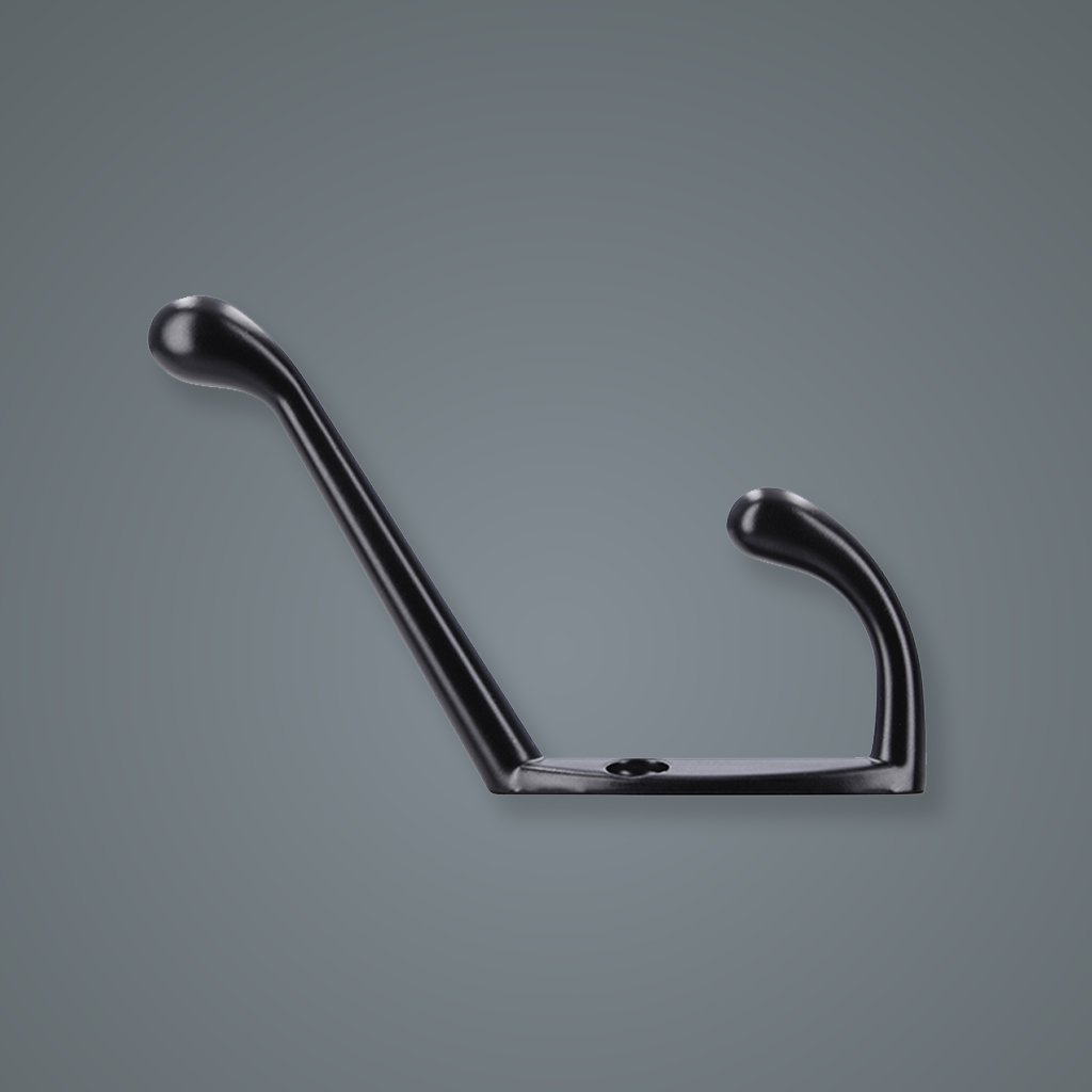 - Dva háčiky rôznej dĺžky, zahnuté smerom nahor, umožňujú pohodlné zavesenie utierok, uterákov alebo drobných predmetov.