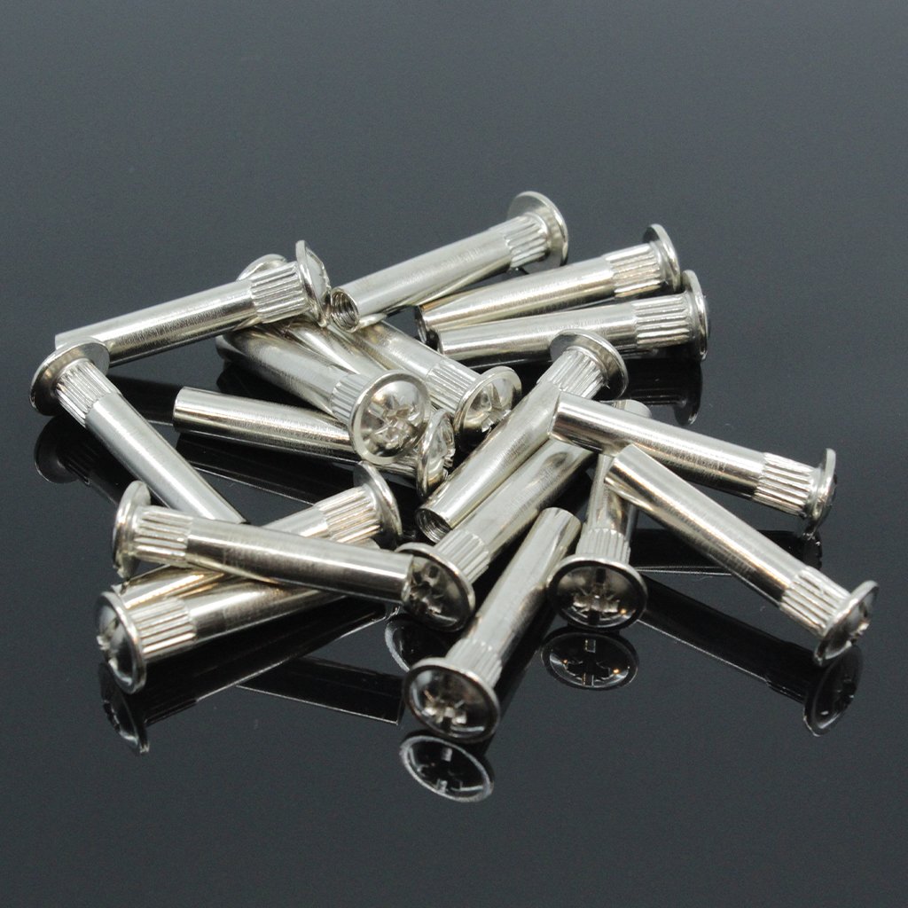 Skrutka spojovacia M4 x 30 slúži na pevné spojenie dvoch bočníc skriniek a ďalších nábytkových dielov. Disponuje obojstrannou hlavou s krížovým zárezom, čo uľahčuje jej montáž. Súčasťou sady je tiež skrutka M4x15 mm a puzdro M4x27, obe poniklované pre odolnosť proti korózii a estetický vzhľad. Tento typ spojovacieho materiálu sa používa hlavne pri montáži nábytku, kde je potrebné pevné spojenie a kvalitný vzhľad.