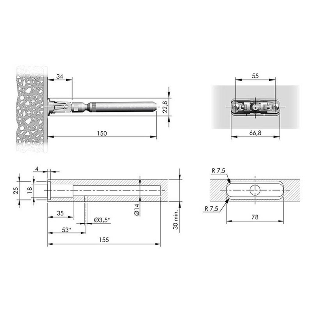 Skrytá konzola TRIADE pre police s hrúbkou 30-40 mm