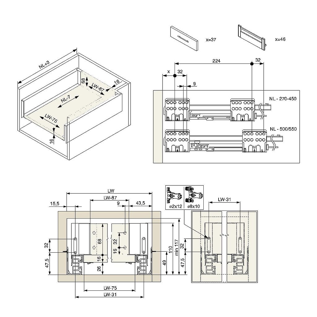 Zásuvky ND60 s úzkou dvojitou bočnicou, nosnosťou 40 kg a možnosťou pridania relingov. Vďaka tlmeniu a synchronizácii sa ticho zatvára a plynulo pohybuje. Predný panel je možné nastaviť vertikálne alebo horizontálne, čo znamená, že pri montáži zásuvky získate maximálnu flexibilitu. Vďaka úzkym bočniciam a širokej ponuke príslušenstva možno maximálne využiť vnútorný priestor zásuvky, čo z nej robí rozumnú voľbu pre akýkoľvek projekt. Zásuvky ND60 sú k dispozícii v štandardnej hrúbke dna 16 mm a 18 mm, s ktorými môžete celú zásuvku zostaviť len z jednej hrúbky dosky.