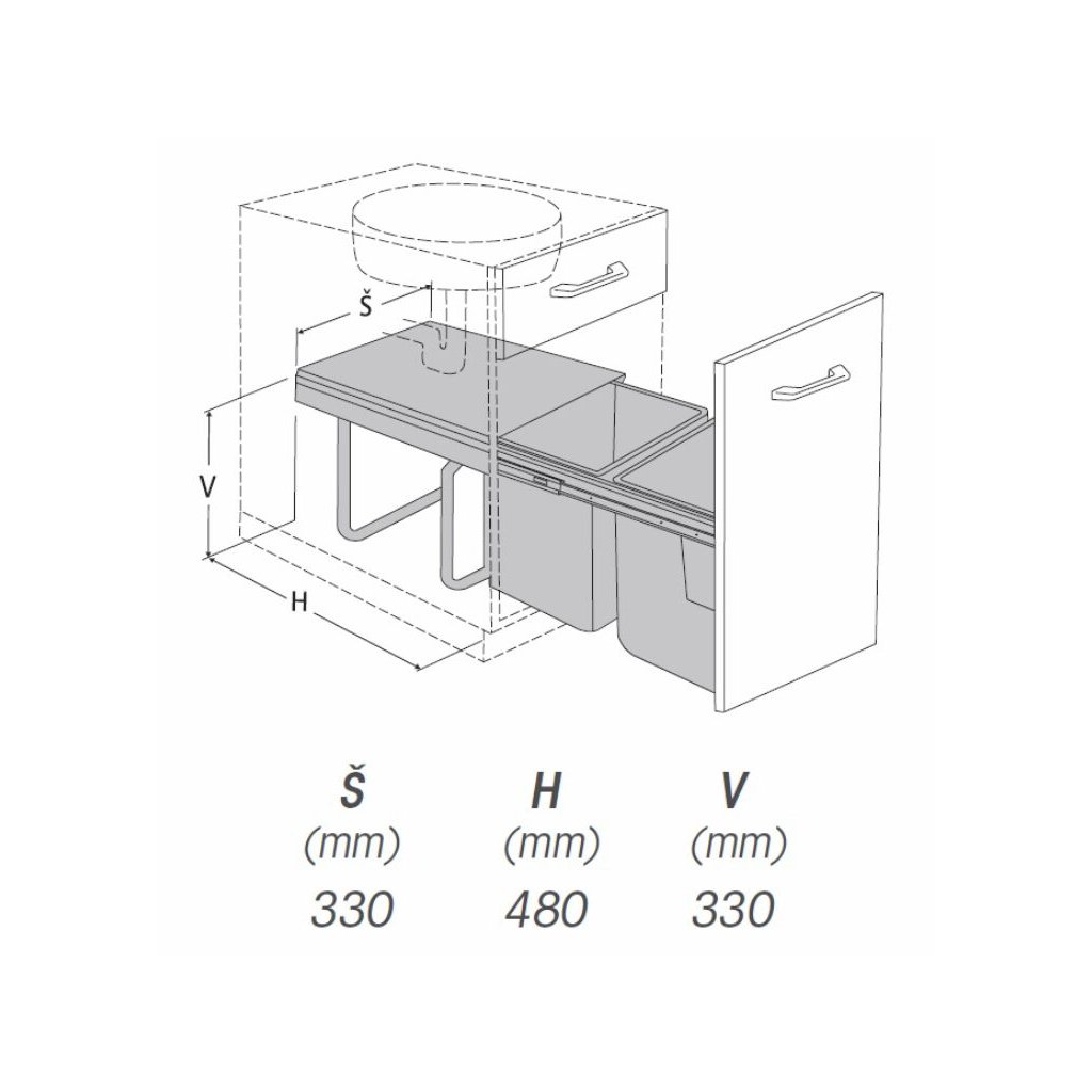 Varianta s úchytmi dvierok na koši. Tento odpadkový kôš je možnú umiestniť pod drez.