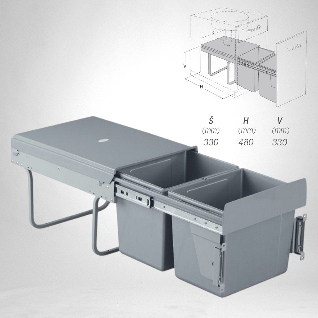 Smetný kôš WIRELI, 400mm, 2x15L, automat pod sifon, sivý