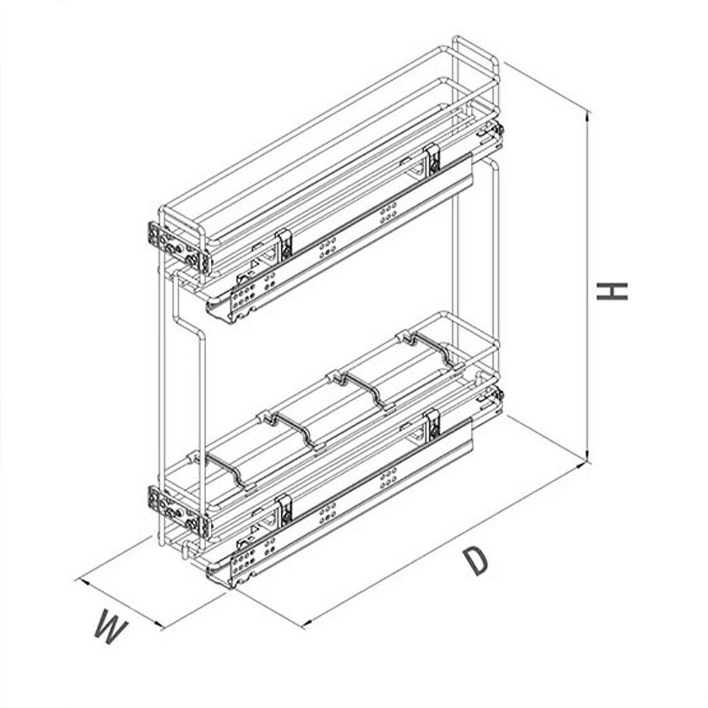 Výsuvný drôtený kôš STARAX s dvoma policami je ideálnym riešením pre úložný priestor v kuchyni. Navrhnutý pre pohodlné uloženie fľašiek, saponátov či drobností, tento kôš sa vysúva spolu s čelom skrinky, čo zaručuje jednoduchý prístup k uloženým predmetom. Výsuvný systém Tandem od BLUM s tlmeným dovieraním zabezpečuje hladký a tichý pohyb, ideálny pre každodenné použitie.