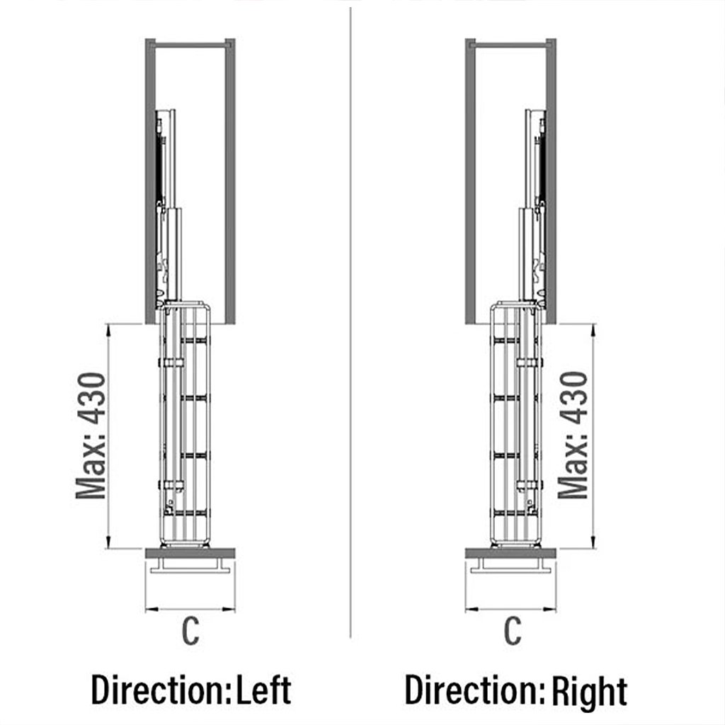 - Šírka korpusu (C): 150 a 200 mm (vonkajšia šírka skrinky)