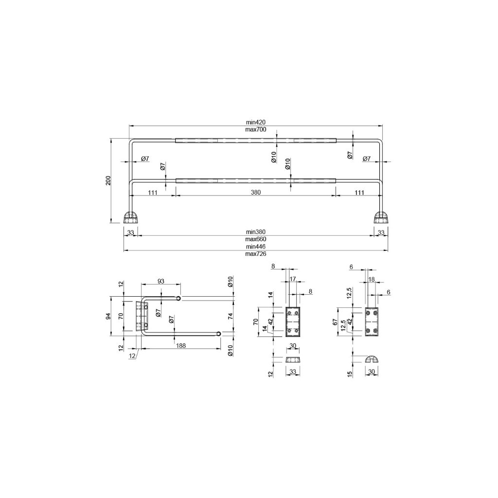 Rozmery (ŠxHxV): 420-700 x 200 x 95 mm
