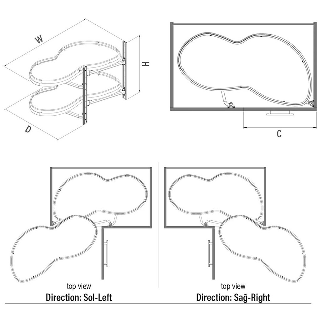 Tento rohový policový systém SECRET je ideálnym riešením pre lepšiu organizáciu a jednoduchý prístup k uloženým veciam v ťažko dostupných rohoch kuchynskej linky.