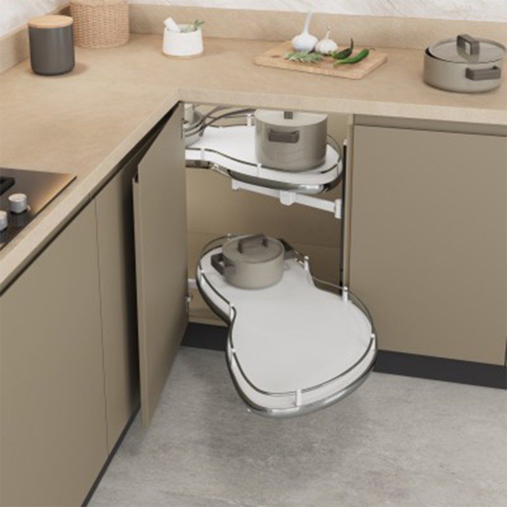 Tento rohový policový systém SECRET je ideálnym riešením pre lepšiu organizáciu a jednoduchý prístup k uloženým veciam v ťažko dostupných rohoch kuchynskej linky.