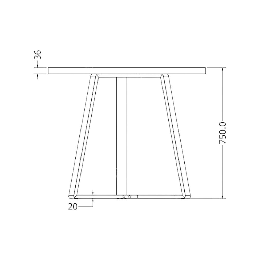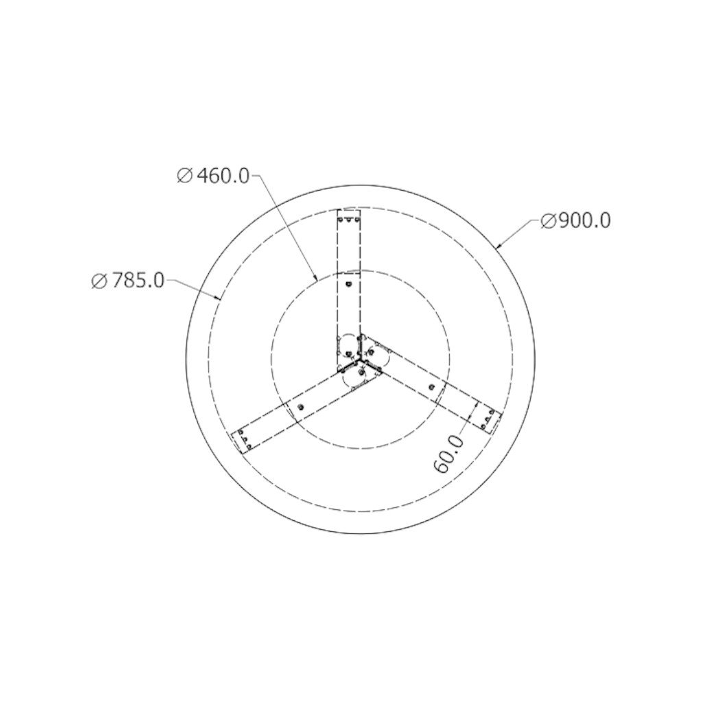 Rozmer stolovej dosky (mm): Minimálny priemer 785 mm, maximálny priemer 900 mm, hrúbka dosky 36 mm