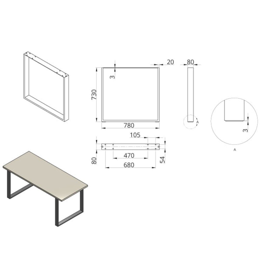 Stolová podnož - DN-970A, 780 x 730 mm, čierna