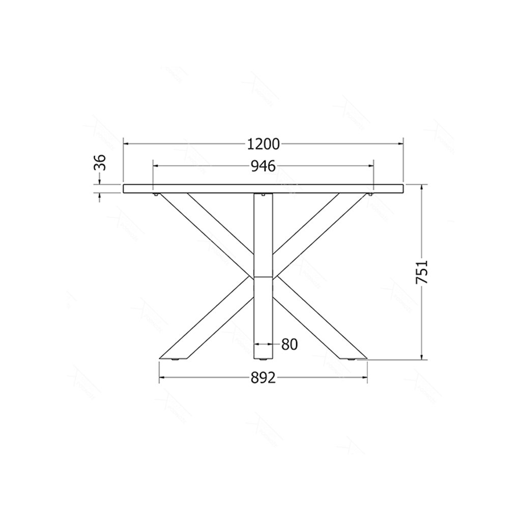 Priemer stolovej dosky (mm): Minimálny: 946mm , Optimálny: 1200mm