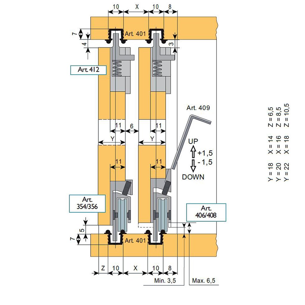 - Spoľahlivé horné a spodné vedenie: Zaručuje presný a tichý pohyb dverí