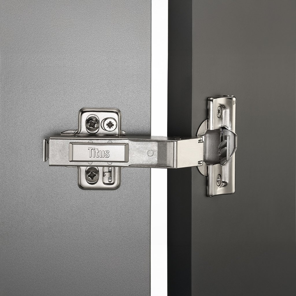 Titus ConfidentClose ponúka rýchle zatváranie, neskorý začiatok spomalenia a tiché dosadnutie s efektom SoftTouch. Tlmiaci mechanizmus je umiestnený priamo v kalíšku závesu a je možné ho jednoducho prispôsobiť rôznym typom dvierok.