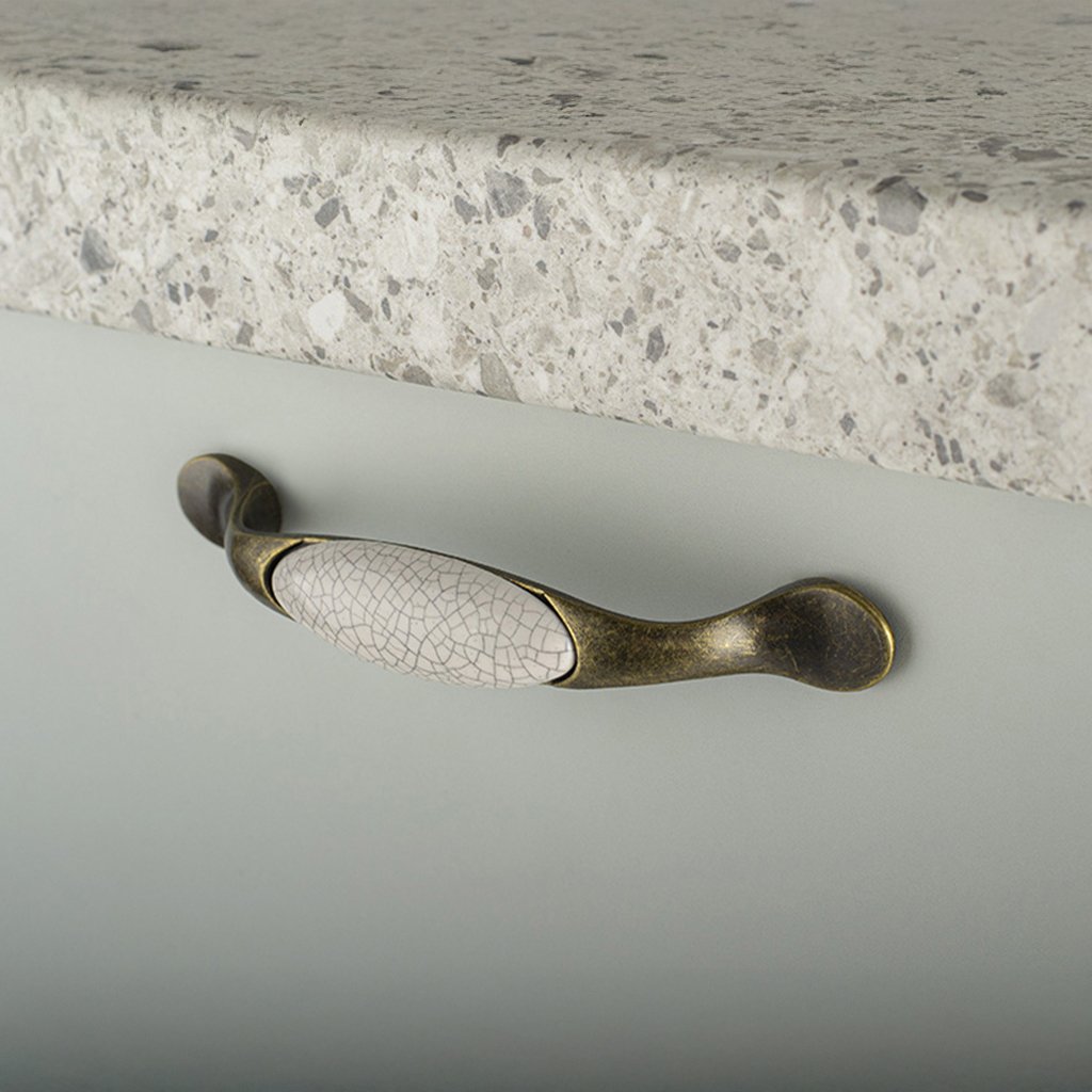 Elegantná úchytka Gipa v kombinácii starozlatej farby a popraskaného porcelánu dodáva nábytku klasický a nadčasový vzhľad. Ideálna voľba pre rustikálny, vintage alebo retro štýl.