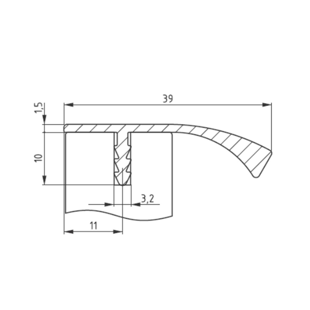 Konkrétne je prezentovaný výrobok zhotovený z ťahaného hliníka, všetky jeho hrany sú jemne zaoblené pre príjemný úchop, a samozrejme nechýba ani profesionálna povrchová úprava samotného materiálu z pohľadovej strany. Typickým znakom tohto produktu je predovšetkým elegantný minimalistický vzhľad a taktiež praktický tvar, vďaka čomu je skvele chránená hrana nábytkových dvierok či zásuviek. Medzi prednosti tejto úchytky patrí aj skutočnosť, že ju možno umiestniť na nábytok nielen v horizontálnom, ale aj vertikálnom smere. Montáž zvládne každý šikovný stolár alebo výrobca nábytku, kedy sa vyfrézuje do hrany nábytku drážka požadovaného rozmeru a následne sa úchytka narazí do dvierka či zásuvky.