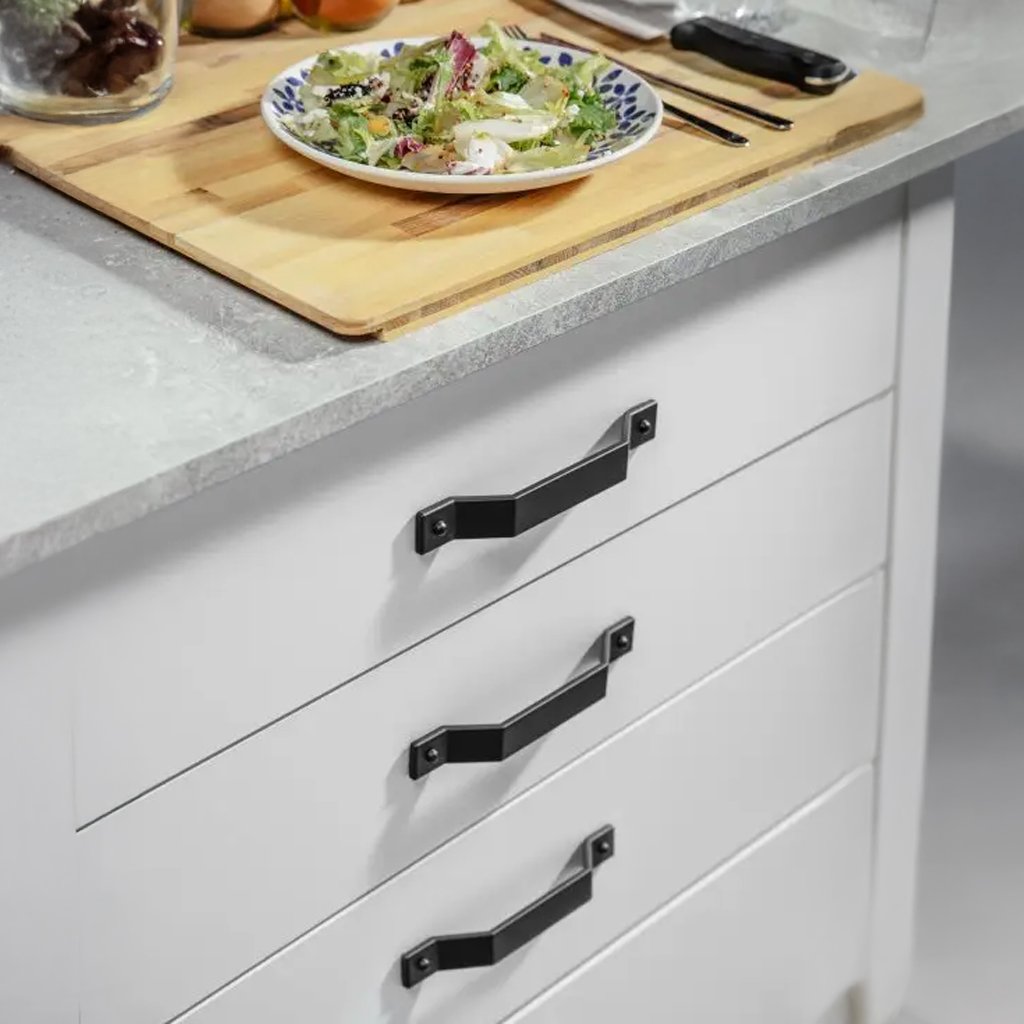 Úchytka STEP C je originálnym doplnkom pre moderný nábytok. Vyniká svojím „zlomeným“ čistým dizajnom, ktorý dodáva nábytku výrazný charakter. Čierna matná verzia úchytky vytvára ostrý kontrast s bielymi čelami, čím zabezpečuje štýlový a moderný vzhľad.