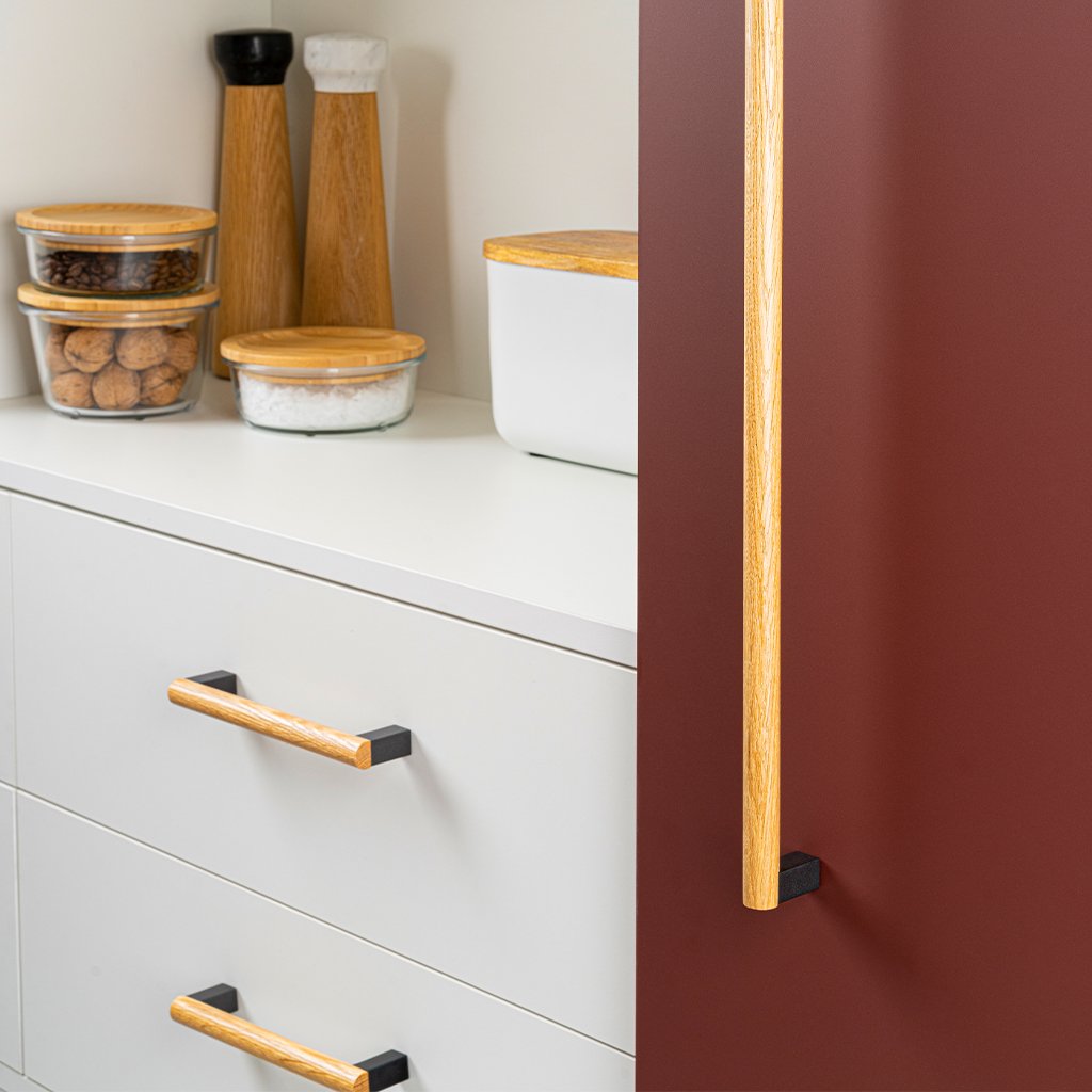Dizajnová úchytka Viefe ETO v prevedení lávovo sivá / dub spája dokonalú funkčnosť a prírodnú estetiku. Okrúhly tvar v kombinácii s obdĺžnikovou základňou dodáva nábytku moderný a zároveň nadčasový vzhľad. Príjemný dotyk prírodného dreva vnáša do interiéru teplo a útulnosť.