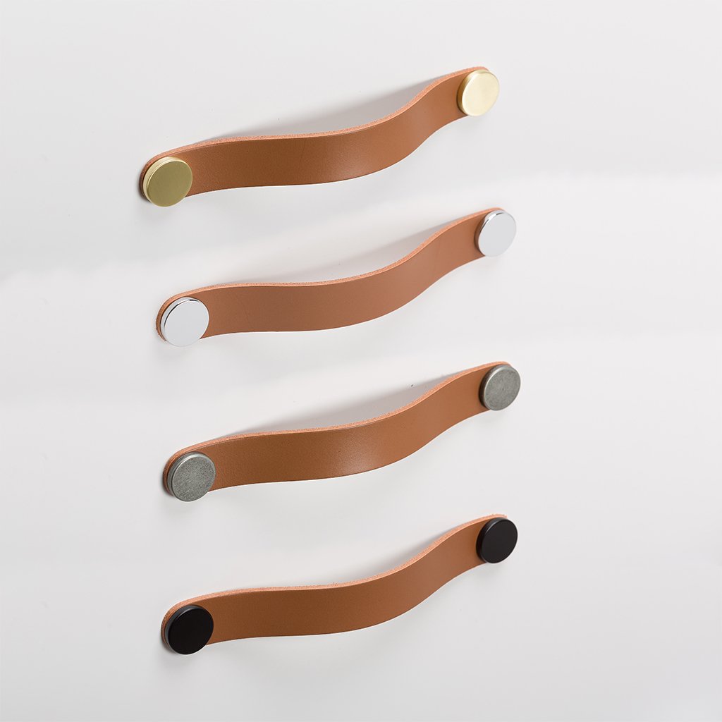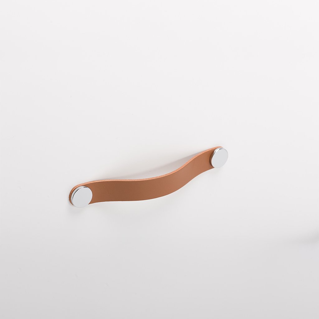 Úchytka FLEXA je vyrobená z kože a každému kusu nábytku, na ktorý sa namontuje, dodá teplý organický nádych.
