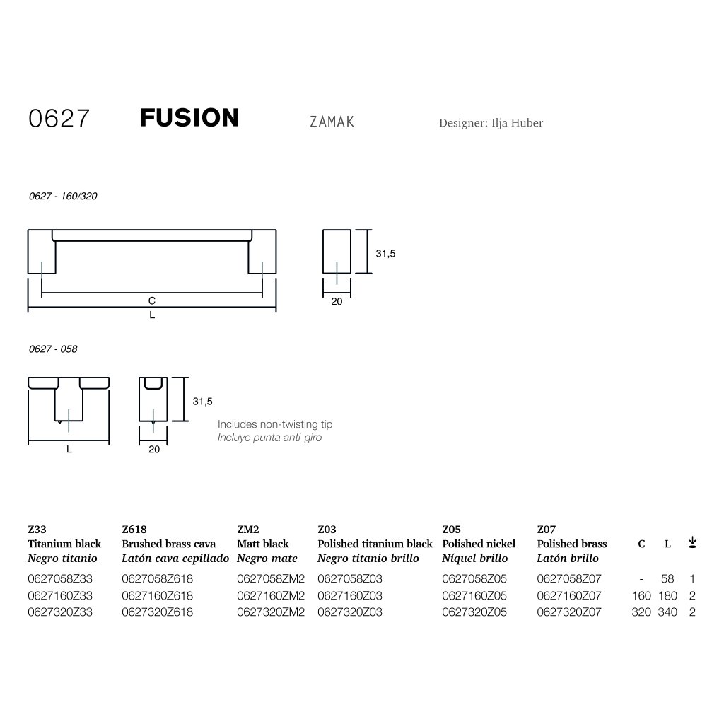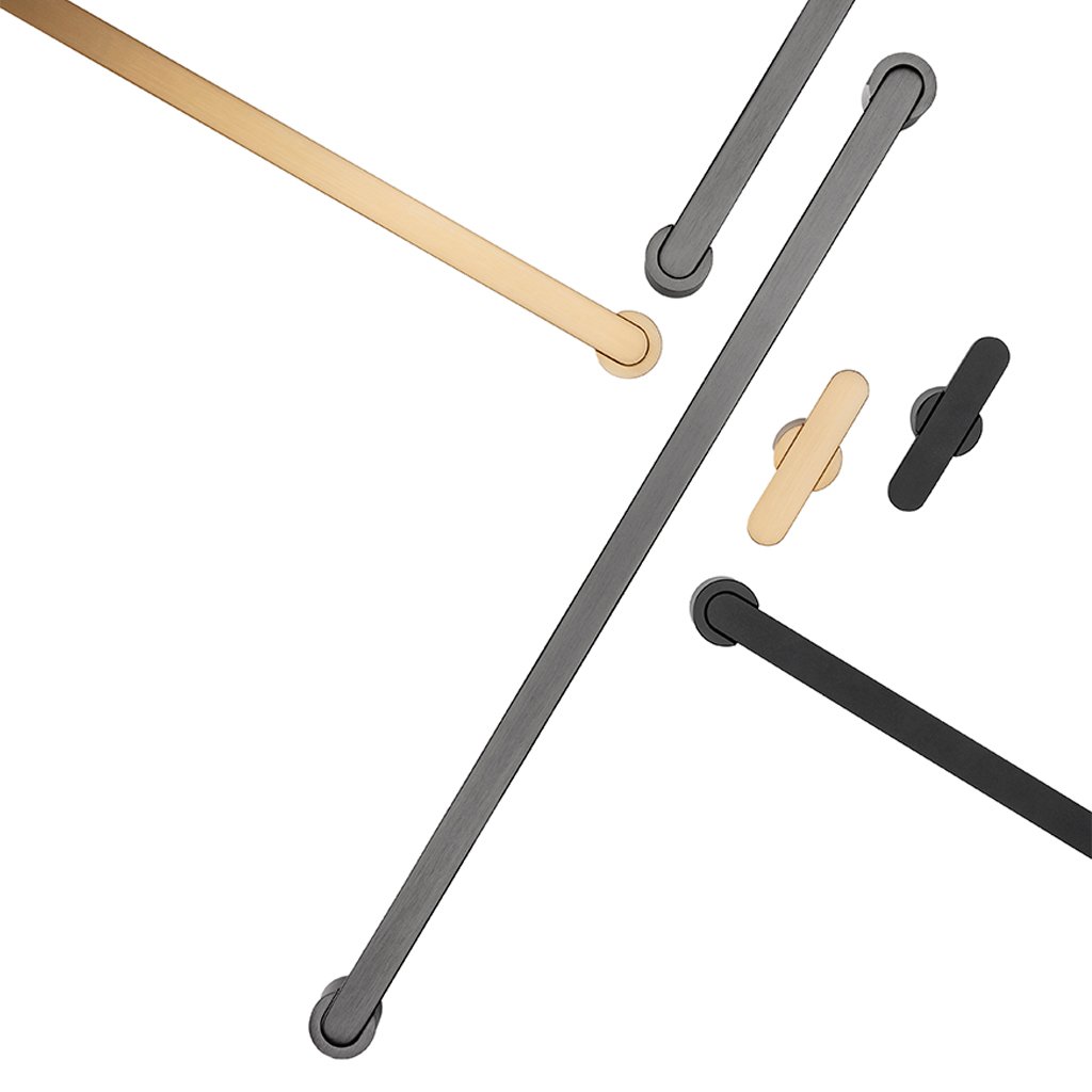 Viacero povrchových úprav – titánová čierna, matná čierna, brúsená mosadz cava, leštená titánová čierna, leštený nikel a leštená mosadz.