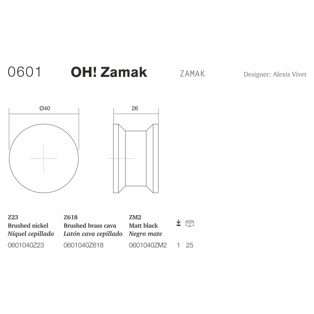 Zamaková knopka OH! je dokonalým riešením do priestorov s kompaktnými rozmermi. Jej praktický a ergonomický dizajn jej dodáva dobrý úchop. Knopka OH! prináša osobitosť kuchynskému nábytku, drobným garzonkám, mobilným domčekom alebo karavanom. Priemer 40 mm a jednoduchá montáž z nej robí prvok priam exkluzívne navrhnutý pre všetky typy komôd. Je k dispozícii v troch prevedeniach: brúsený nikel, brúsená champagne a matná čierna. Môže z nej byť výrazný dizajnový doplnok s vlastným charakterom do každého interiéru.