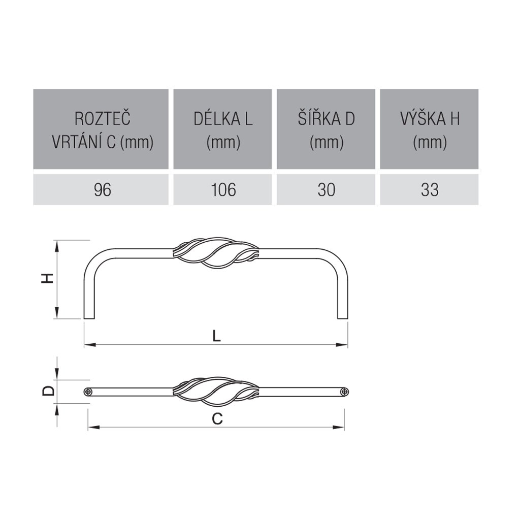 Úchytka - Virella L, Starocín, 96 mm