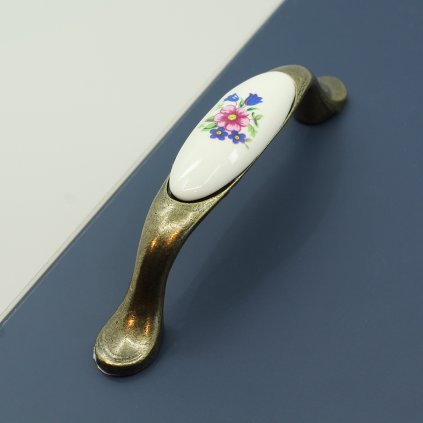 Úchytka - ALATRI, Mosadz a porcelán (VAR ROZTEC 128 mm)