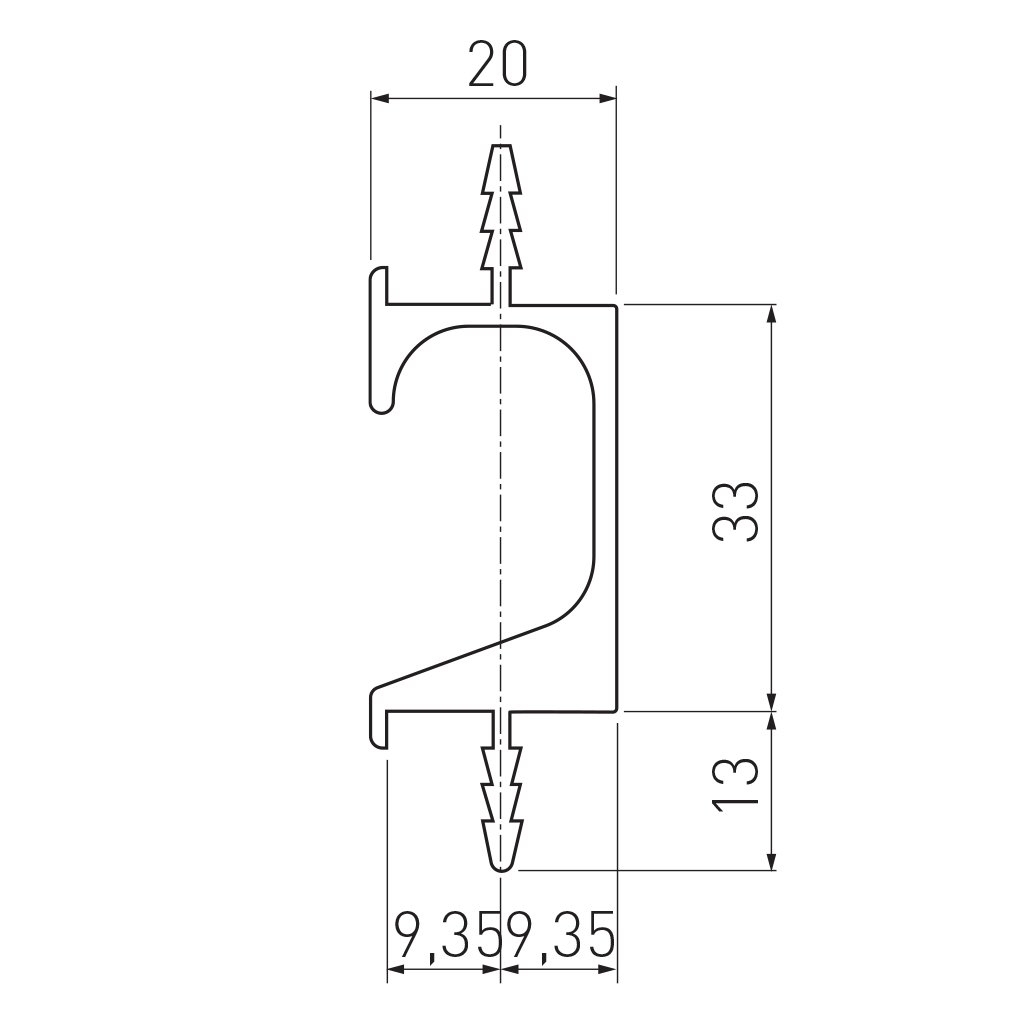 UKW - Profil C2 - Úchytka narážacia 3,5 m dĺžka - UKW-17 - Hliník