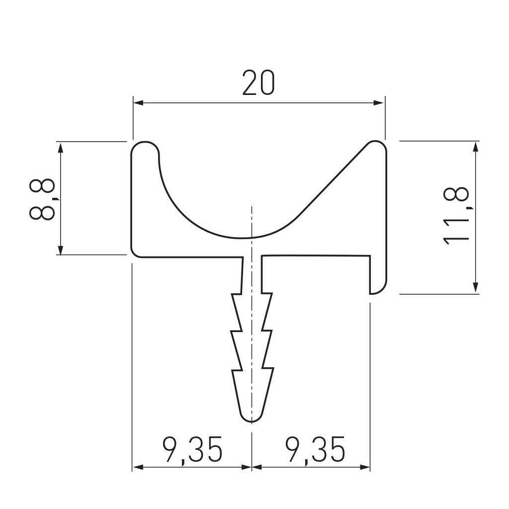 UKW - Profil U - Úchytka narážacia 3,5 m dĺžka - UKW-4 - Biela