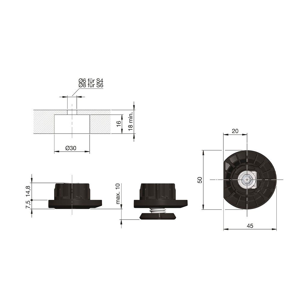 Výškové nastavenie nohy Integrato Z, výška 7 - 17 mm, zamak/čierny plast