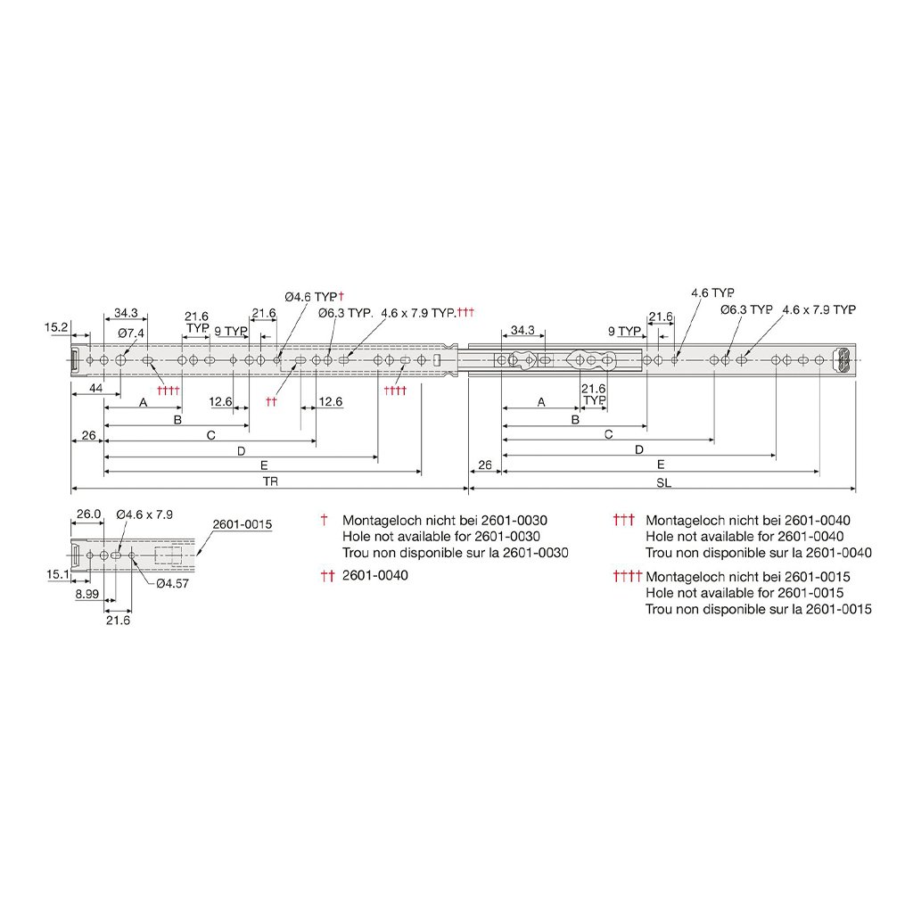 Výsuv guličkový – Accuride 2601, 200 mm, plný výsuv