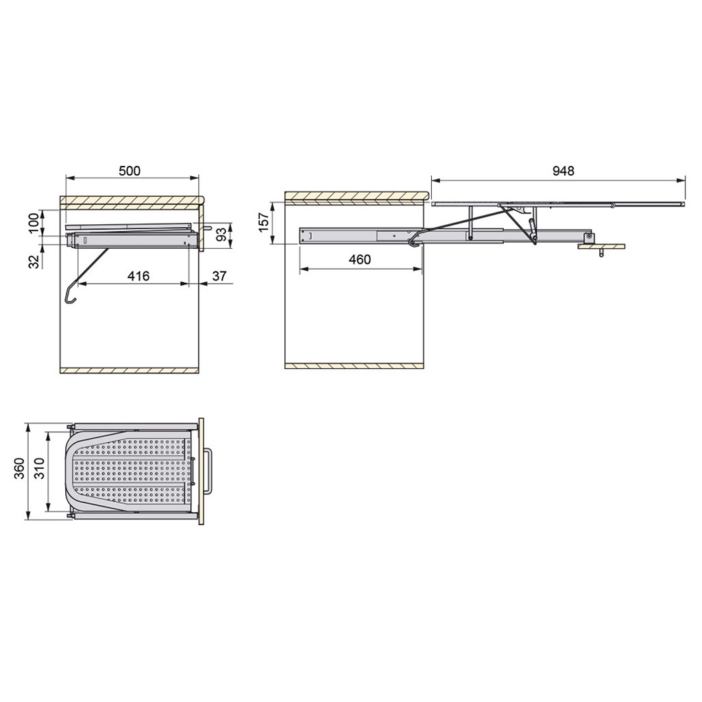 Výsuvná žehliaca doska, ktorá sa dá zabudovať do nábytku.