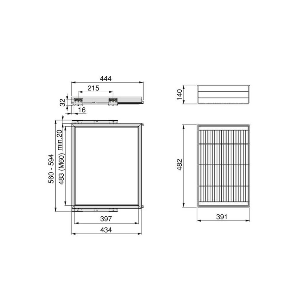 • M60: Vhodný pre vnútornú šírku skrine 560 - 594 mm (šírka košíka 482 mm).