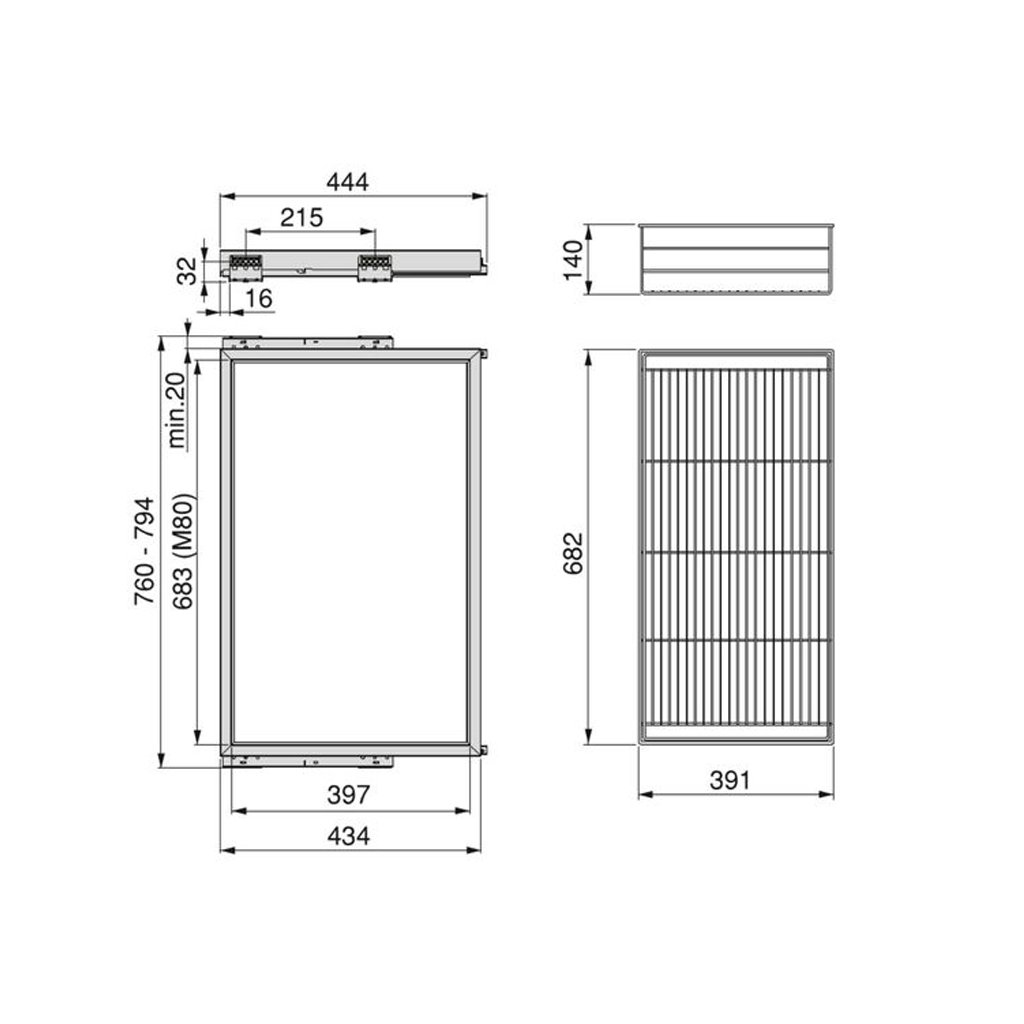 • M80: Vhodný pre vnútornú šírku skrine 760 - 794 mm (šírka košíka 682 mm).