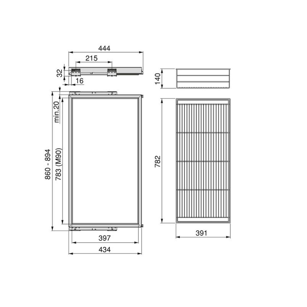 • M90: Vhodný pre vnútornú šírku skrine 860 - 894 mm (šírka košíka 782 mm).