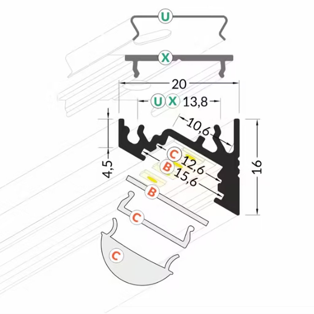 WIRELI – Univerzálny uhlový profil pre LED pásy, montáž 30°/60°