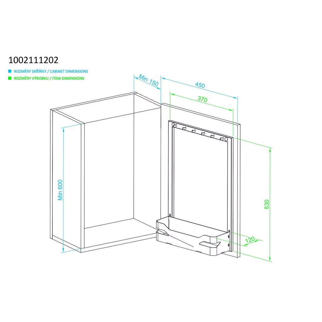- Rozmery koša (š × h × v): 370 × 120 × 530 mm