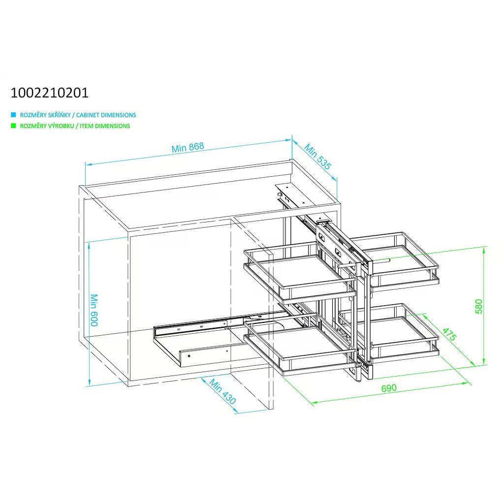 - Rozmery koša (š × h × v): 690 × 475 × 580 mm