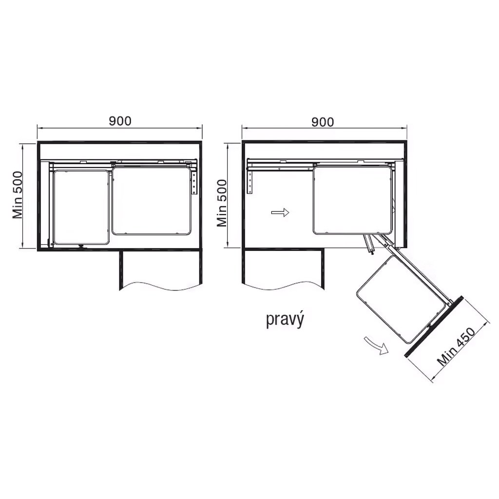 Wireli - MagicCorner Elegance s tlmením, plné dna, 850x490x520 mm, chróm, pravé