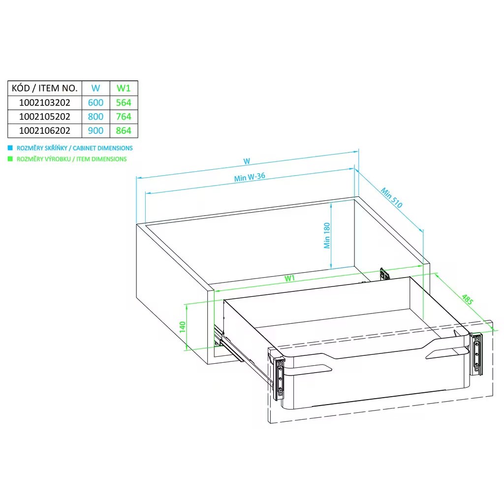 - Určený pre spodné kuchynské skrinky šírky 600 mm