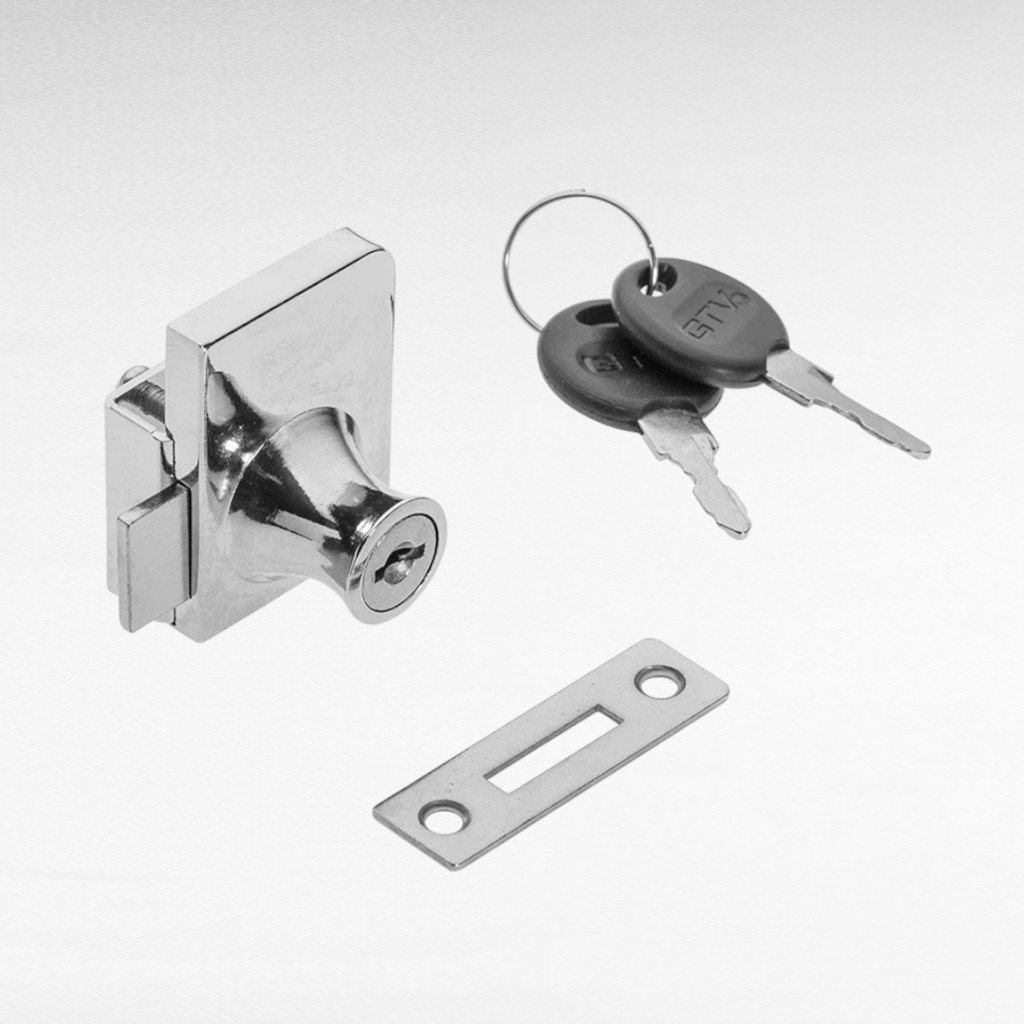 Tento zámok na sklo v chrómovej farbe kombinuje funkčnosť a moderný vzhľad, čím zaručuje štýlové zabezpečenie vašich sklenených plôch.