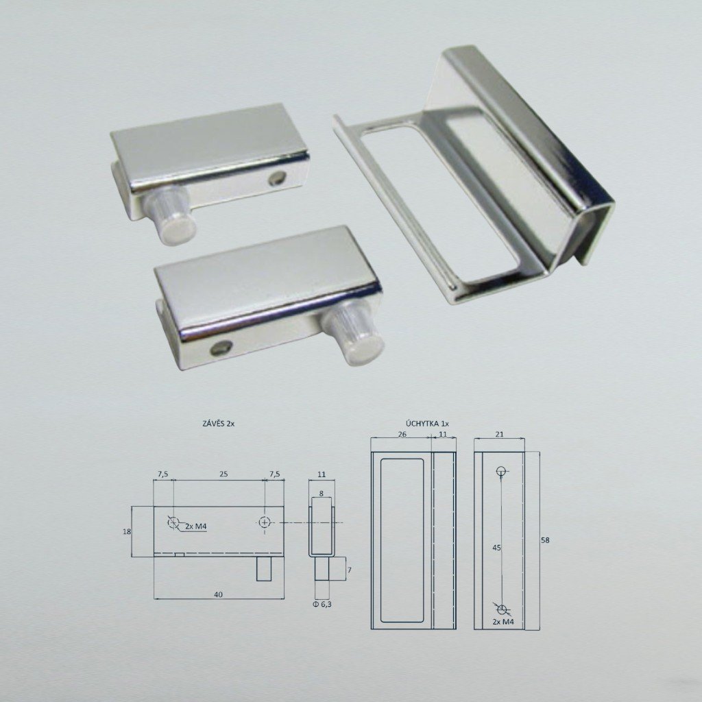 Sada závesov na sklo – Horný, spodný záves + úchytka, obojstranná inštalácia bez vŕtania