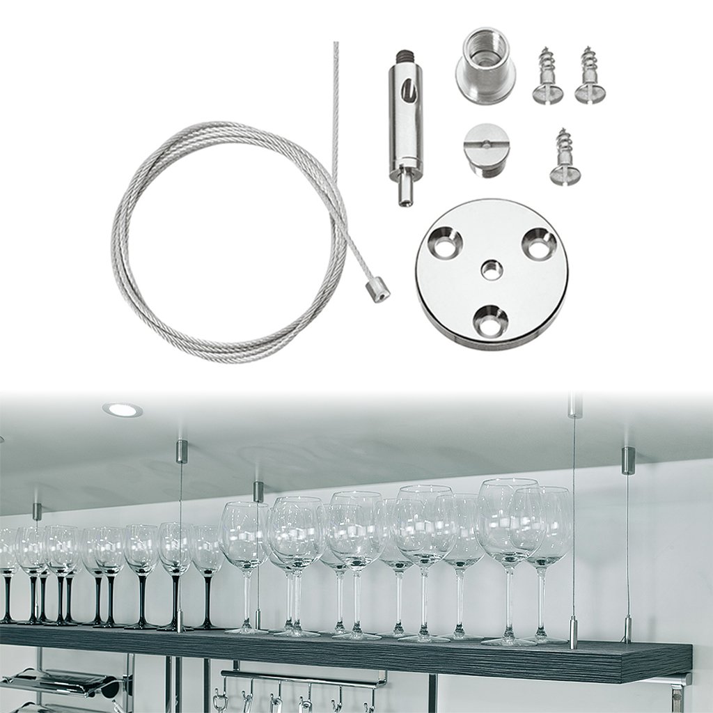 Závesný systém je ideálnym riešením na stabilné a bezpečné zavesenie drevených políc. Vďaka elegantnému oceľovému lankovému systému s nastaviteľnou dĺžkou sa hodí do moderných aj klasických interiérov.